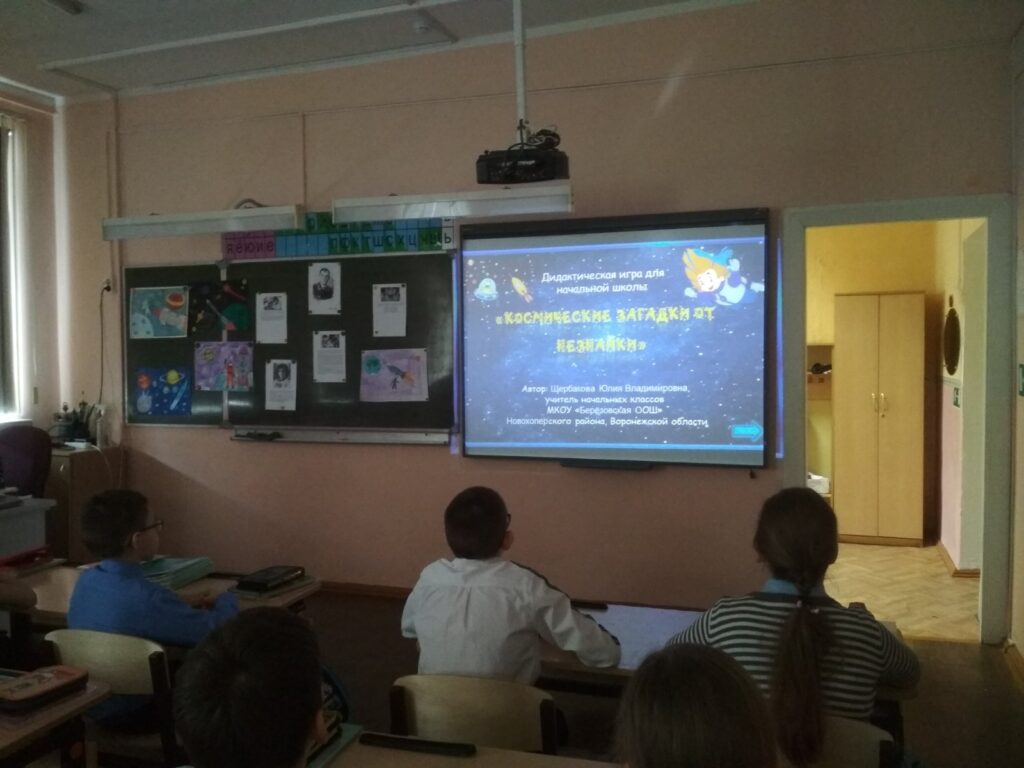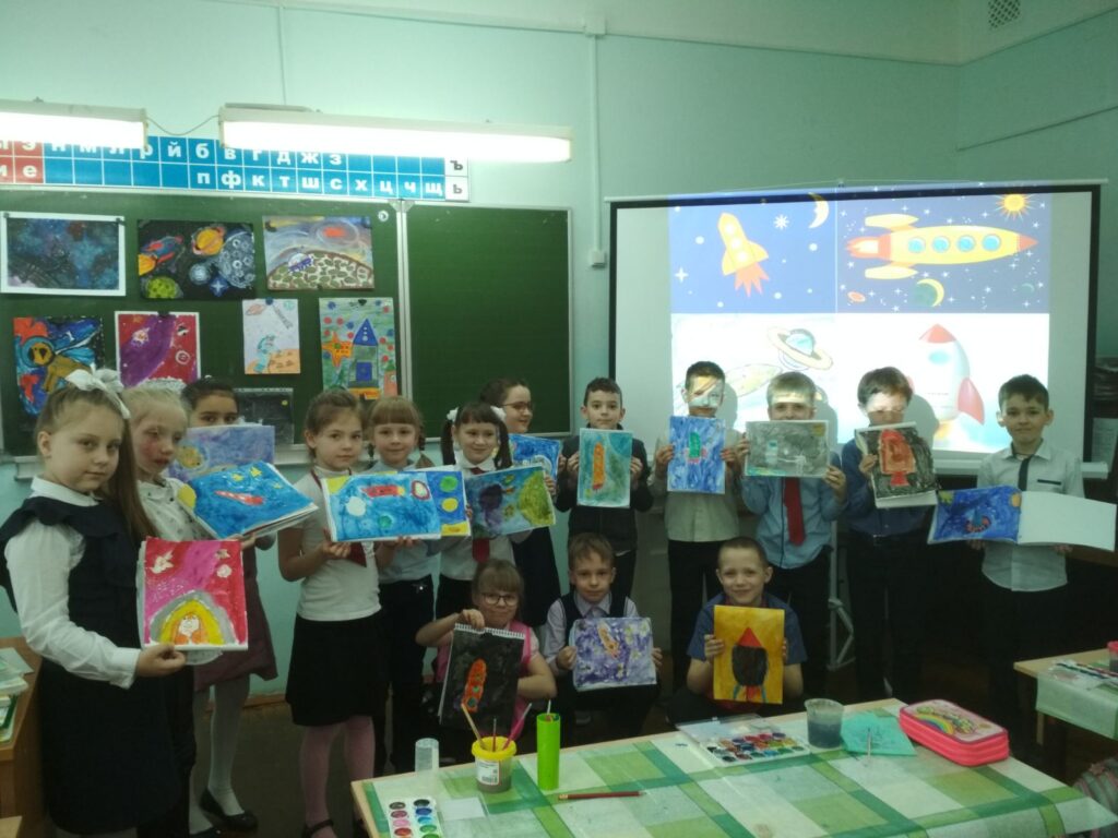 В рамках «космической» недели, посвящённой юбилею первого полёта человека в космос, 06.04.21 г. учащиеся начальных классов приняли участие в игре-викторине «Навстречу звездам», в ходе которой ребята проверили свои знания о космосе, поговорили о первом полете человека в космос, о звездах и ракетах. А также ребята подготовили выставку своих «космических» рисунков.