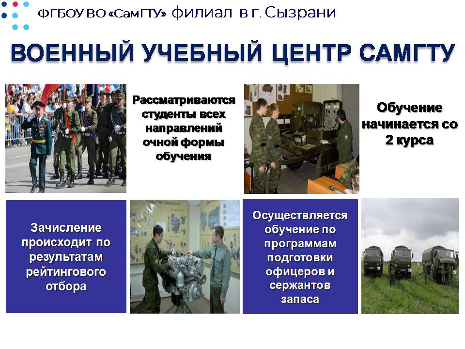 Абитуриенты, поступающие в Политех, должны знать, что обучение в военном учебном центре – это уникальная возможность, которую из местных образовательных учреждений предоставляет только Сызранский филиал СамГТУ.