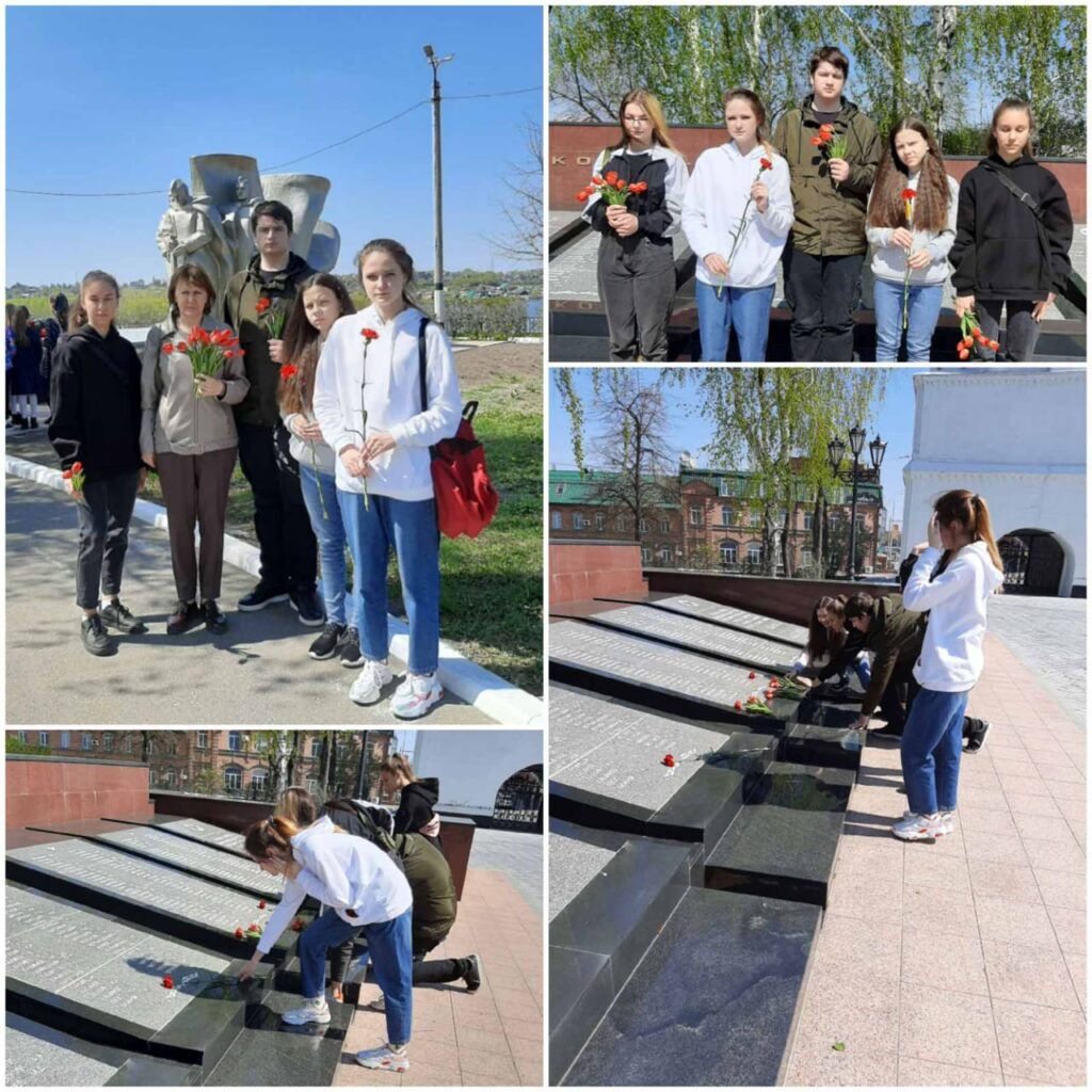 Гимназисты вместе со своими классными руководителями провели экскурсии к памятникам боевой славы, мемориалу «Вечный огнь». Ученики возложили цветы, прочитали стихи о Великой Победе, посвященные героям Великой Отечественной войны.